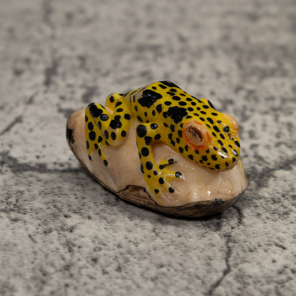 Vintage Yellow And Black Poison Dart Frog Tagua Carving