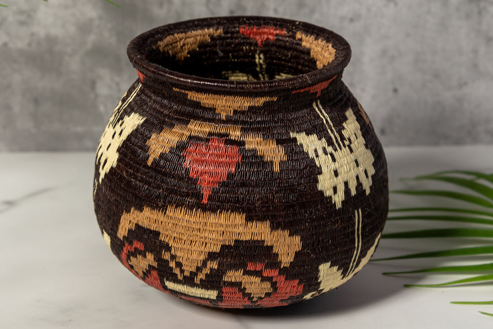 Maroon Yellow Black And White Swirl Rainforest Basket