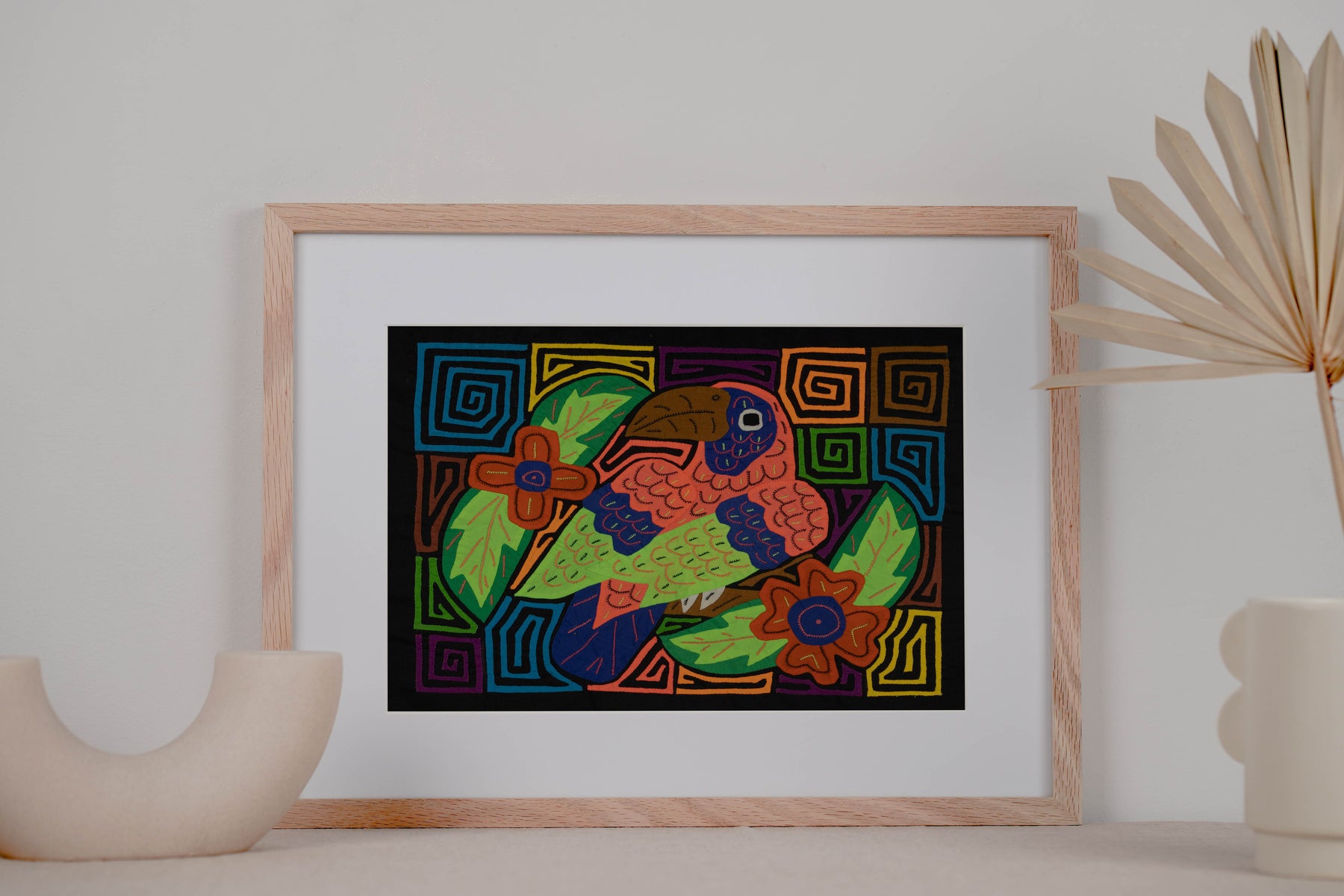A Mola is a handcrafted textile traditionally worn by Guna women as part of their cultural dress. Originating in Panama, Colombia, and across Central and South America, Molas are now celebrated as decorative and collectible art pieces. They can be framed, turned into pillow covers, used in quilting, or displayed as vibrant wall art.