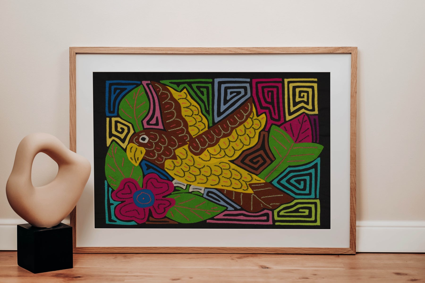 A Mola is a handcrafted textile traditionally worn by Guna women as part of their cultural dress. Originating in Panama, Colombia, and across Central and South America, Molas are now celebrated as decorative and collectible art pieces. They can be framed, turned into pillow covers, used in quilting, or displayed as vibrant wall art.