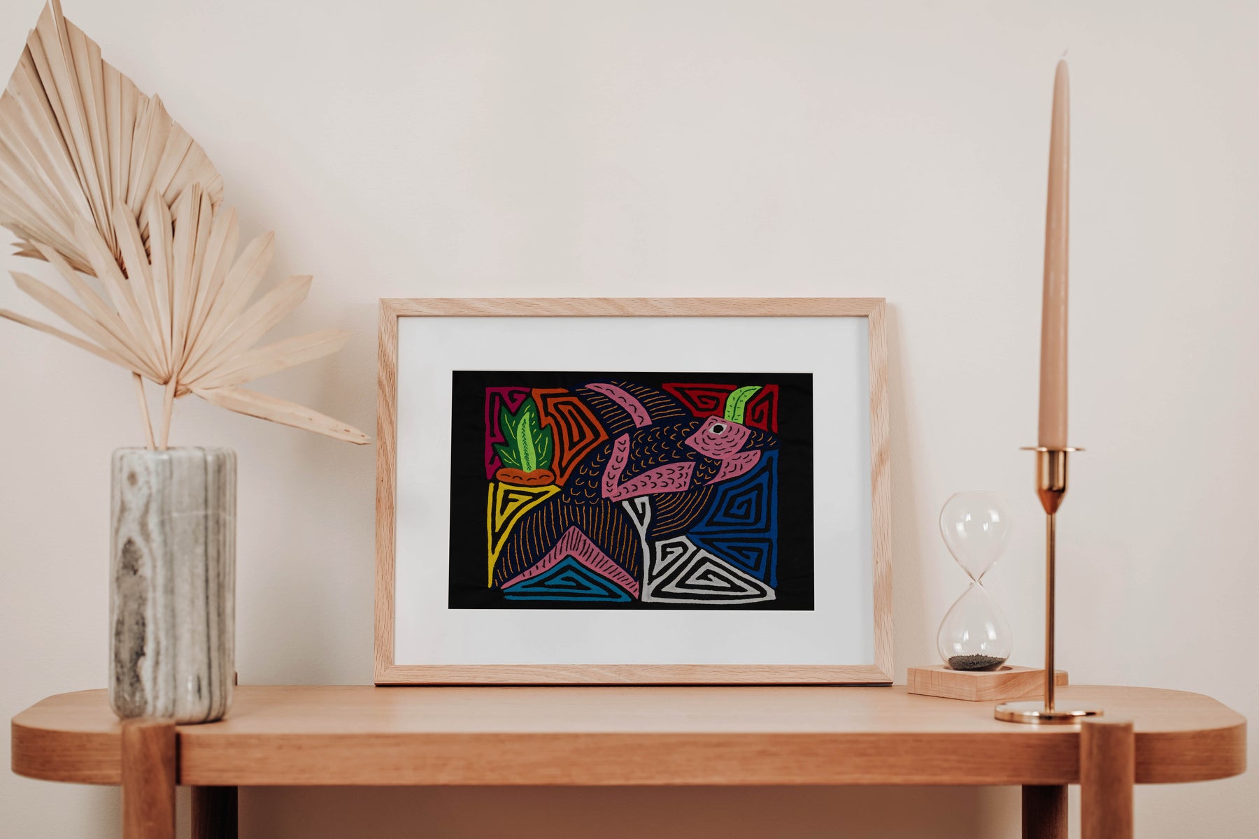 A Mola is a handcrafted textile traditionally worn by Guna women as part of their cultural dress. Originating in Panama, Colombia, and across Central and South America, Molas are now celebrated as decorative and collectible art pieces. They can be framed, turned into pillow covers, used in quilting, or displayed as vibrant wall art.