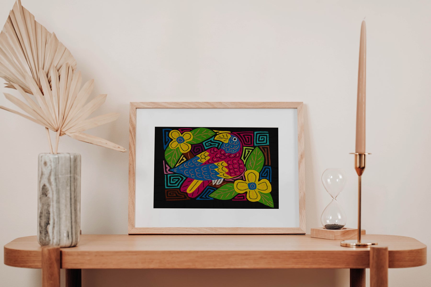 A Mola is a handcrafted textile traditionally worn by Guna women as part of their cultural dress. Originating in Panama, Colombia, and across Central and South America, Molas are now celebrated as decorative and collectible art pieces. They can be framed, turned into pillow covers, used in quilting, or displayed as vibrant wall art.