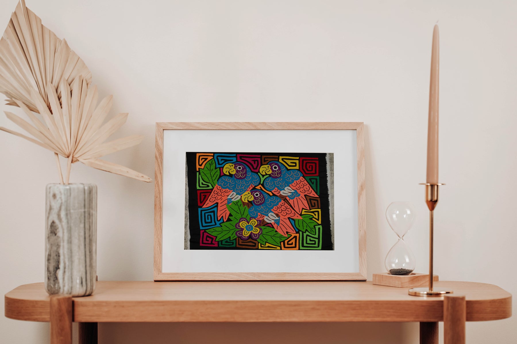 A Mola is a handcrafted textile traditionally worn by Guna women as part of their cultural dress. Originating in Panama, Colombia, and across Central and South America, Molas are now celebrated as decorative and collectible art pieces. They can be framed, turned into pillow covers, used in quilting, or displayed as vibrant wall art.