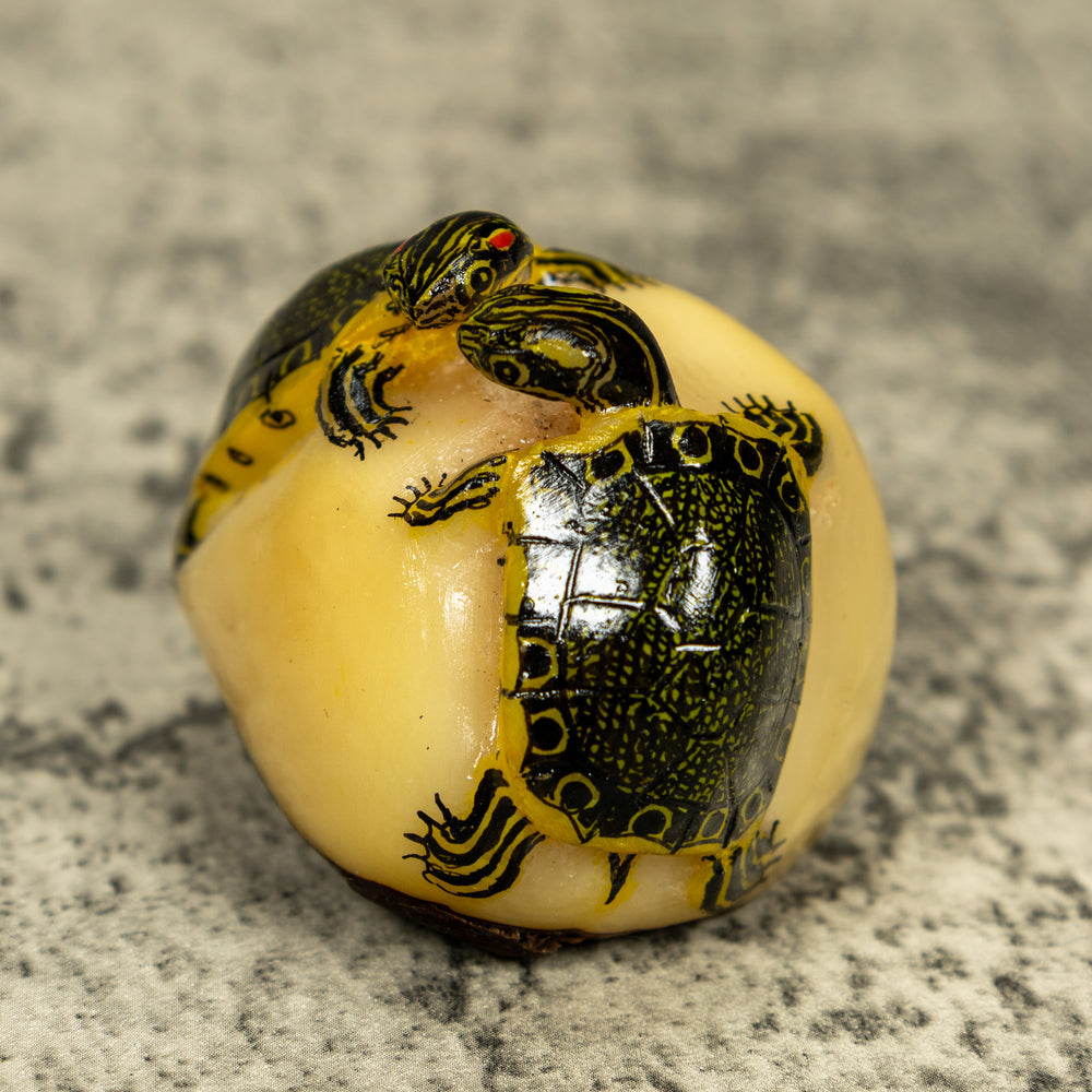 Black And Brown Sea Turtle Emerging From Egg Tagua Carving