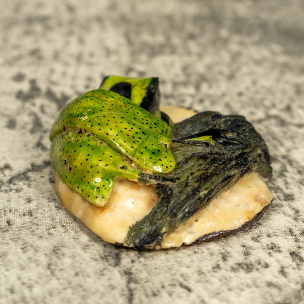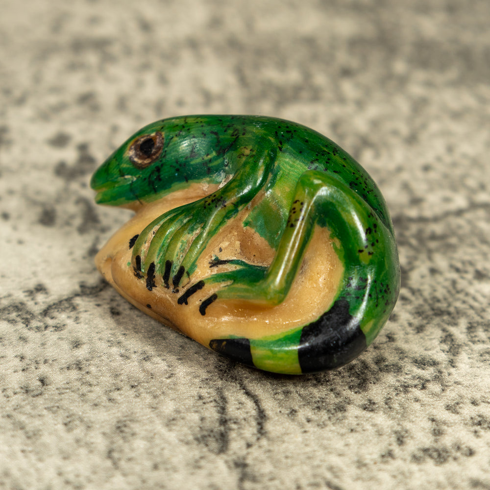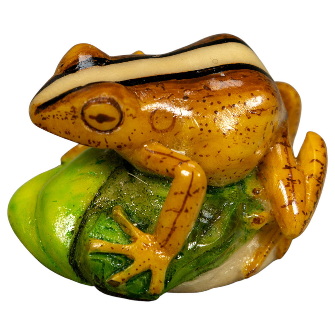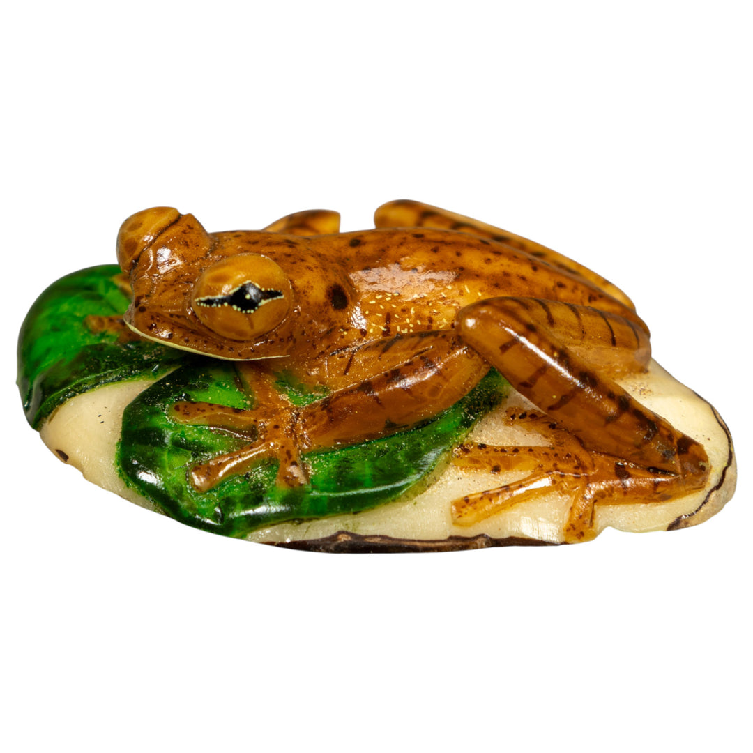 Green Poison Dart Frog Under Leaf Tagua Carving