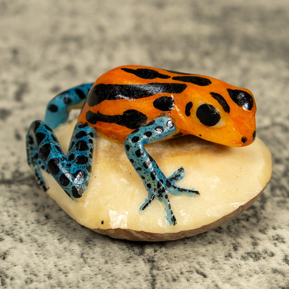 Blue Orange And Black Poison Dart Frog Tagua Carving
