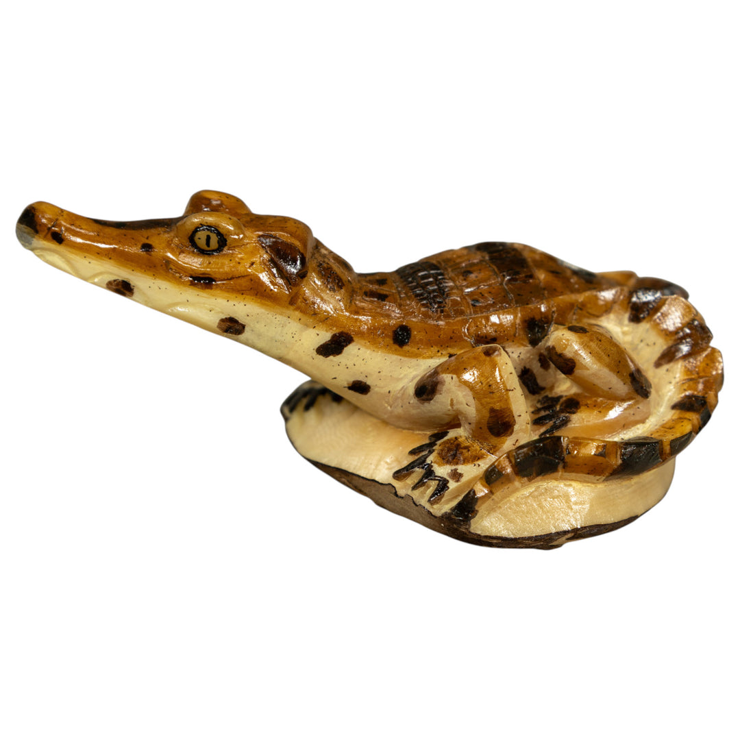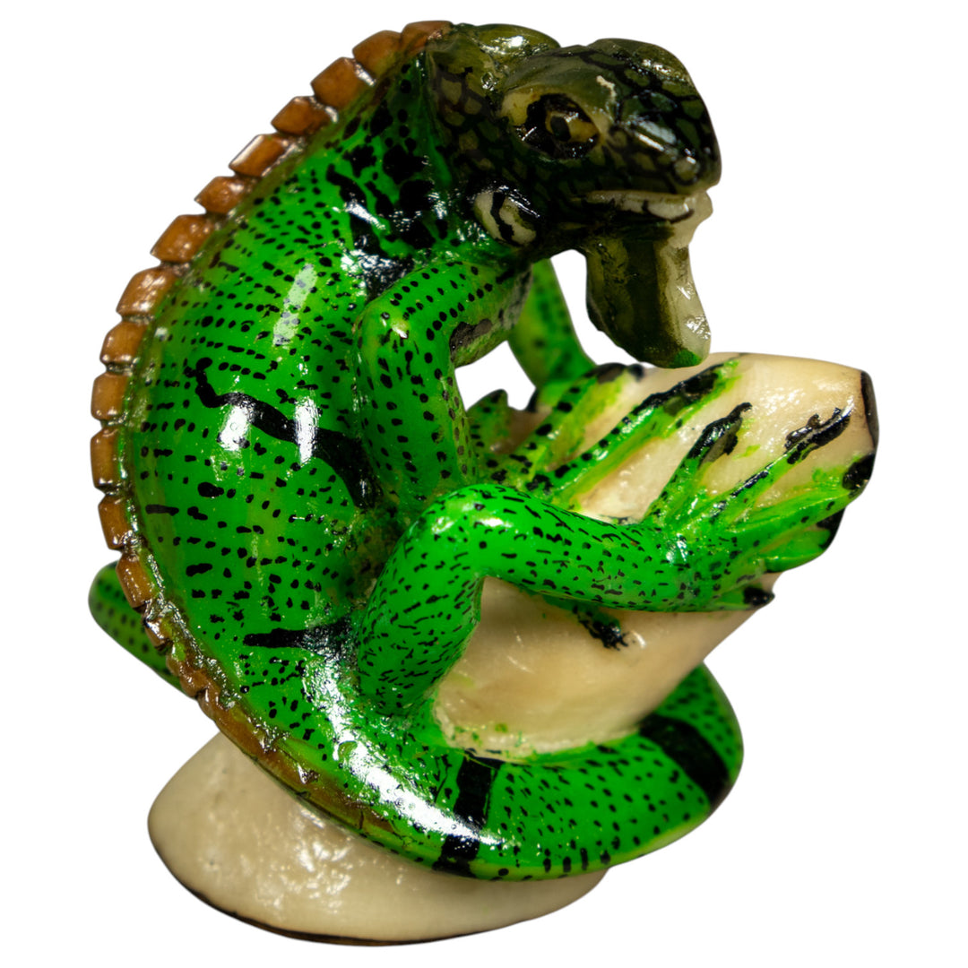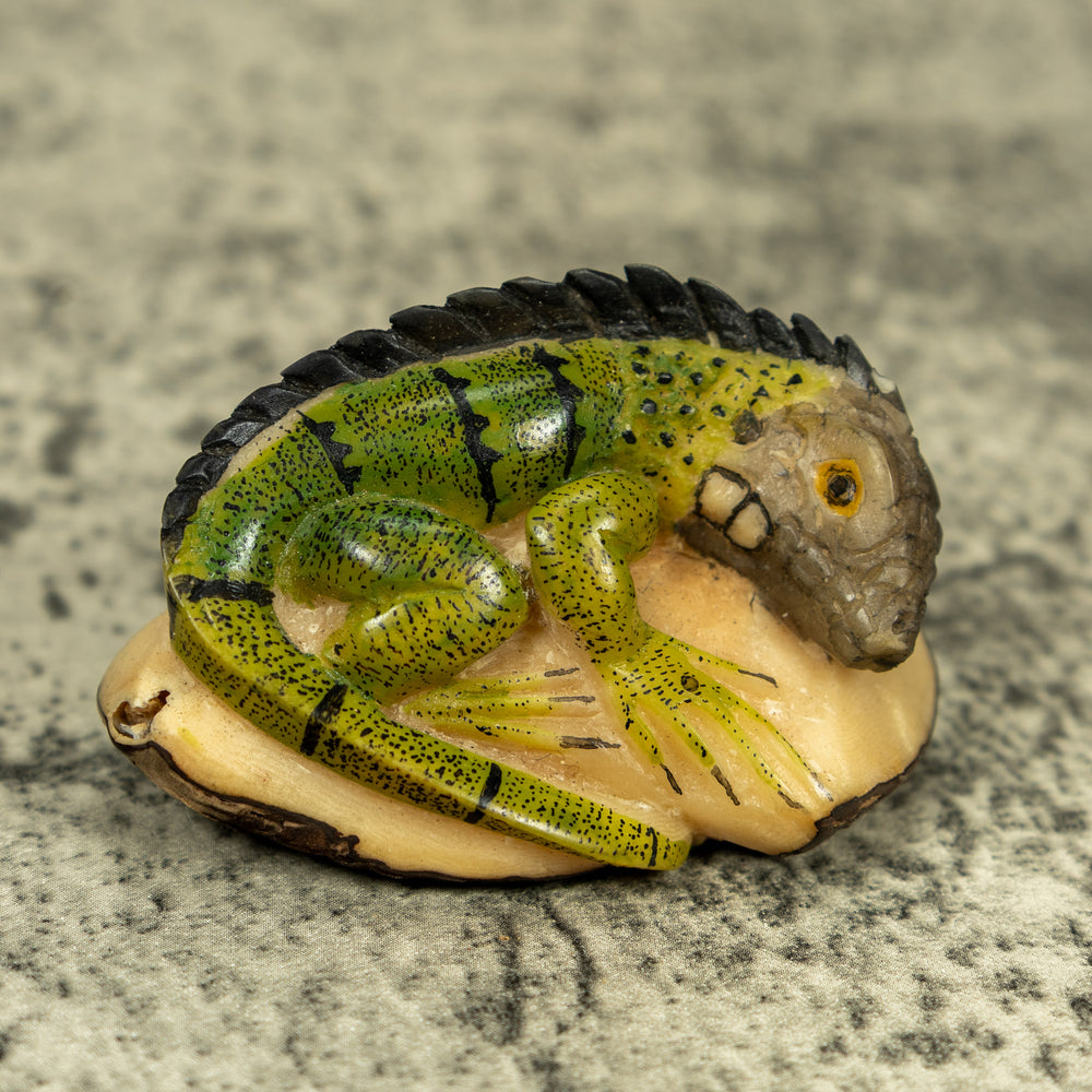 Brown And Black Gecko Lizard On Pedestal Tagua Carving