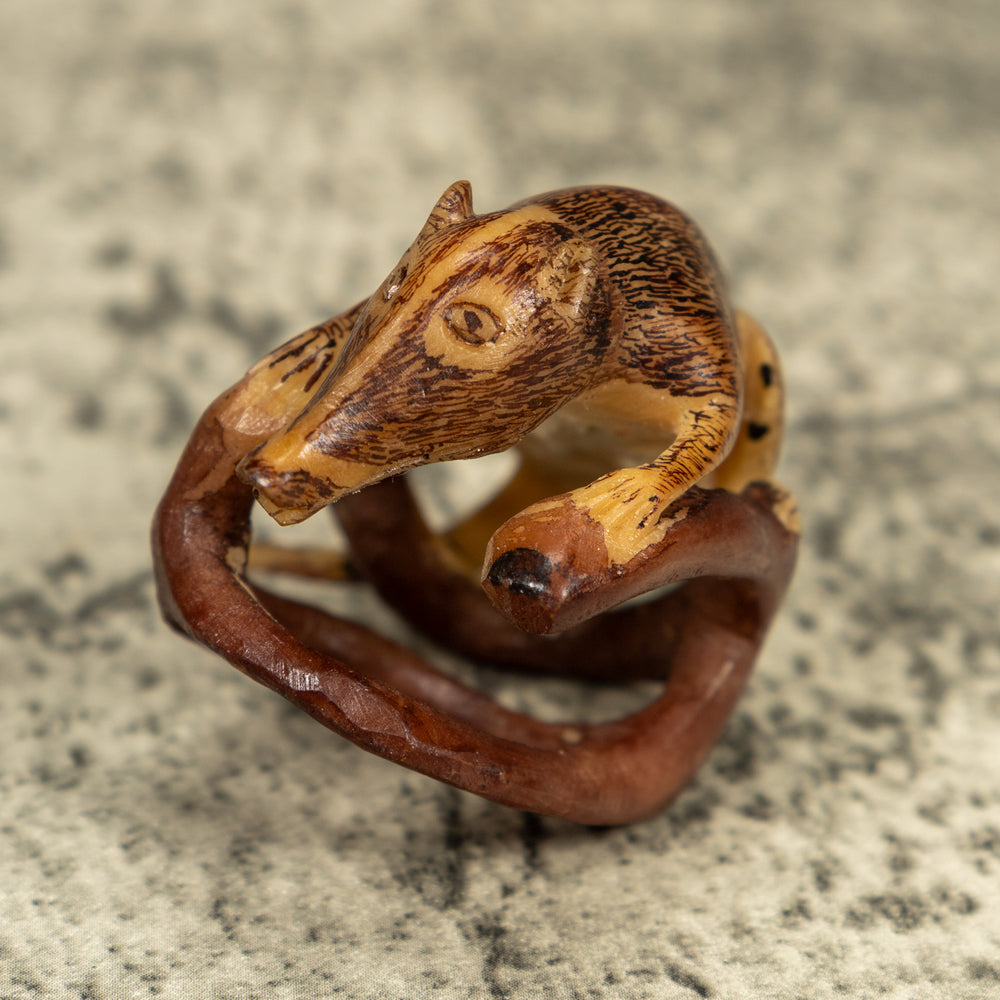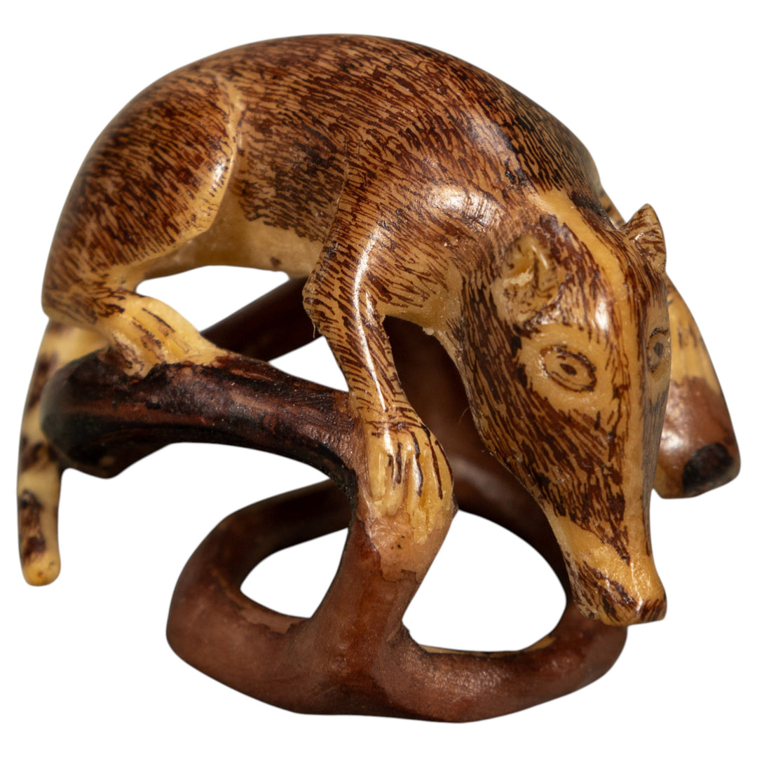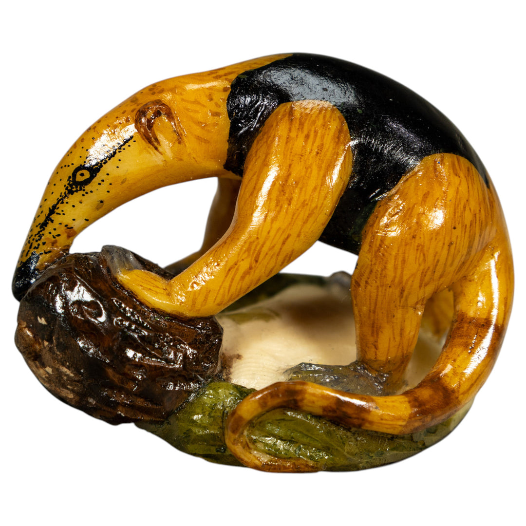 Brown And Black Anteater With Termit Nest Tagua Carving