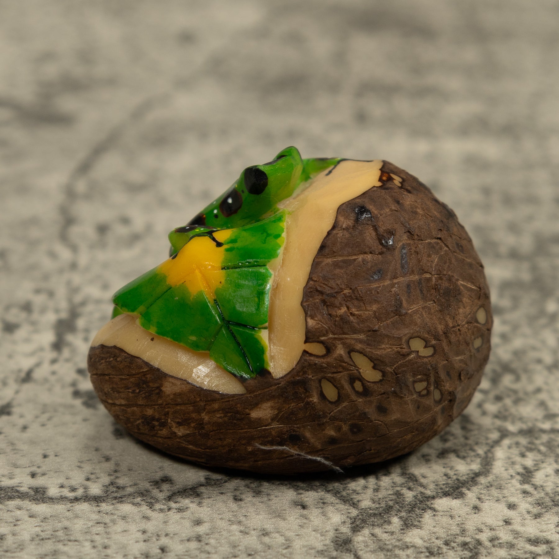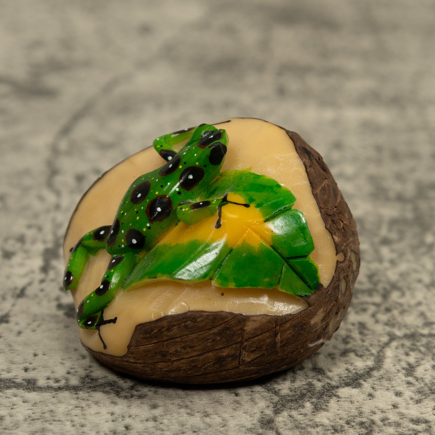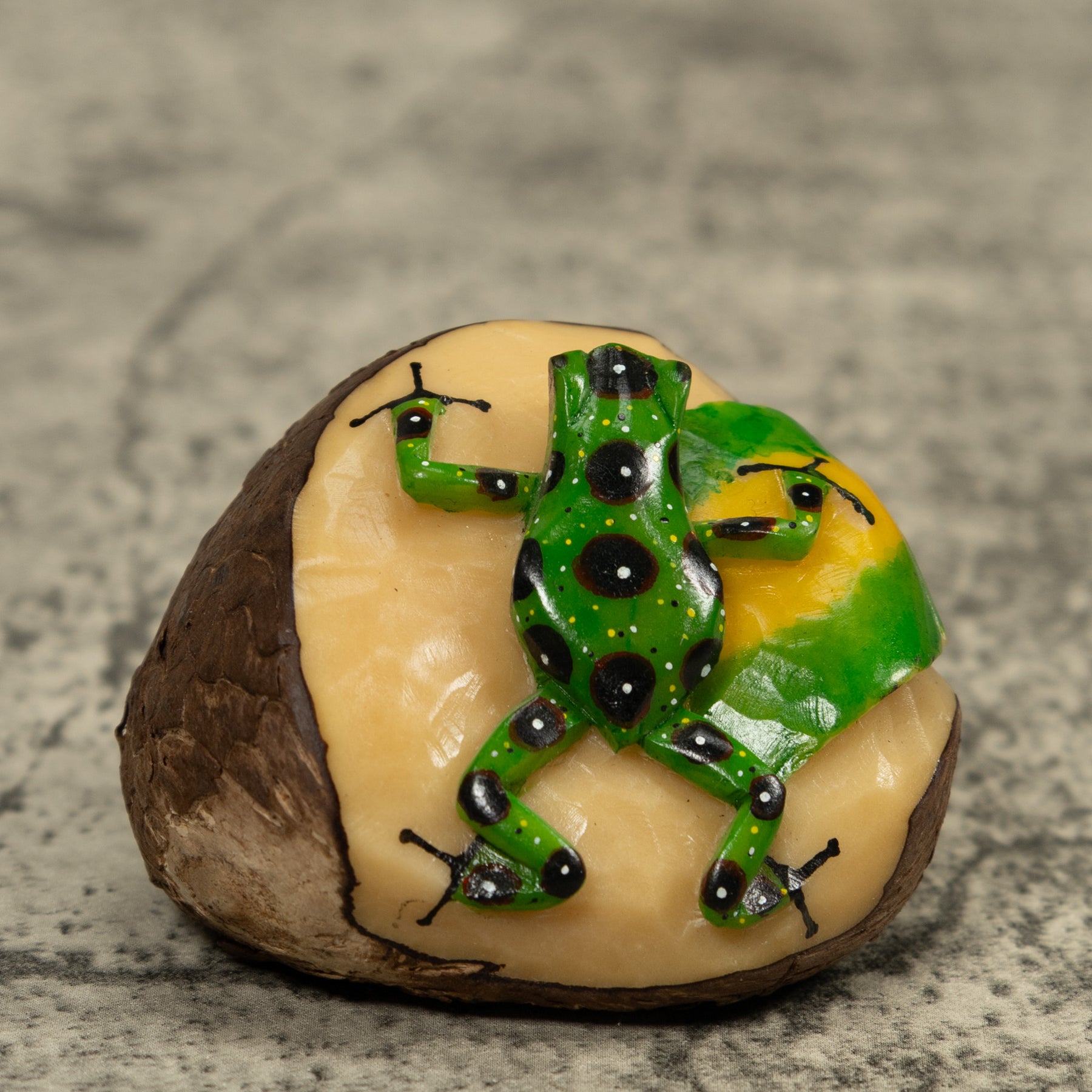 Hand carved from sustainably harvested tagua nut, often called “vegetable ivory”, this charming Poison Dart Frog Tagua Carving celebrates the rich biodiversity of the Latin American rainforest. Each small sculpture is created by skilled artisans in Panama who carefully shape and polish the natural nut before bringing the animal to life with detailed hand painting. Every piece is made by our artisan partners for TraderBrock, helping support traditional craft and fair, long term relationships with local makers.