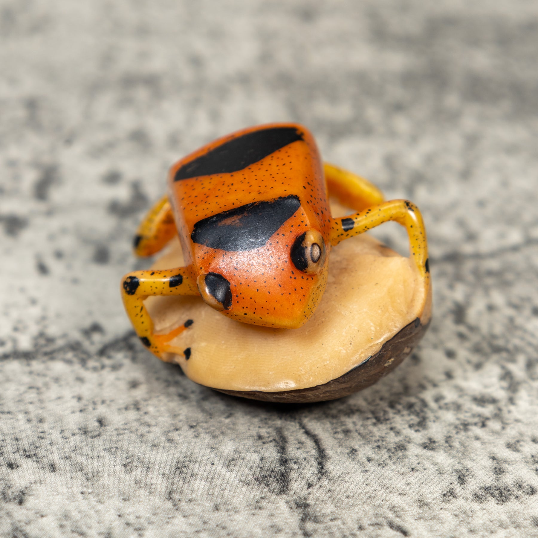 Hand carved from sustainably harvested tagua nut, often called “vegetable ivory”, this charming Frog celebrates the rich biodiversity of the Latin American rainforest. Each small sculpture is created by skilled artisans in Panama who carefully shape and polish the natural nut before bringing the animal to life with detailed hand painting. Every piece is made by our artisan partners for TraderBrock, helping support traditional craft and fair, long term relationships with local makers.
