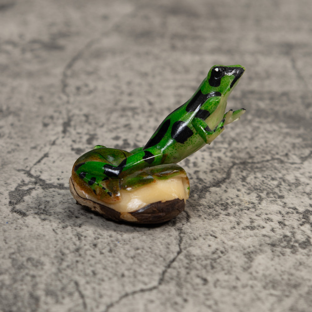 Green and Black Poison Dart Frog Tagua Carving