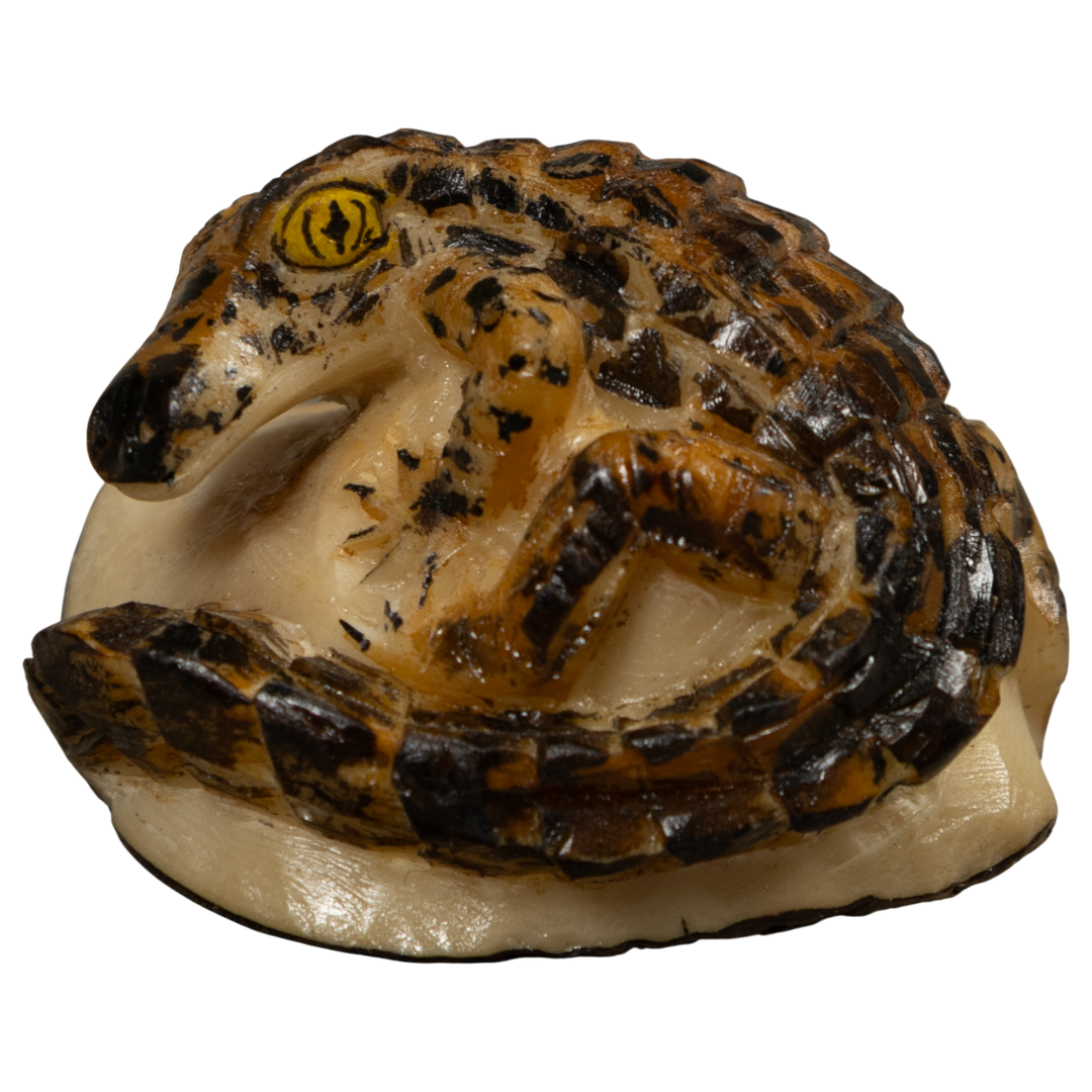 Snake And Golden Frog Tagua Carving