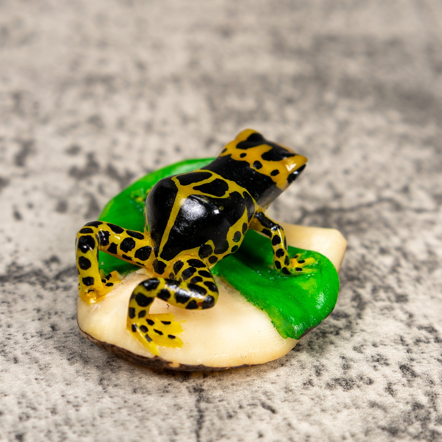 Hand carved from sustainably harvested tagua nut, often called “vegetable ivory”, this charming Frog celebrates the rich biodiversity of the Latin American rainforest. Each small sculpture is created by skilled artisans in Panama who carefully shape and polish the natural nut before bringing the animal to life with detailed hand painting. Every piece is made by our artisan partners for TraderBrock, helping support traditional craft and fair, long term relationships with local makers.