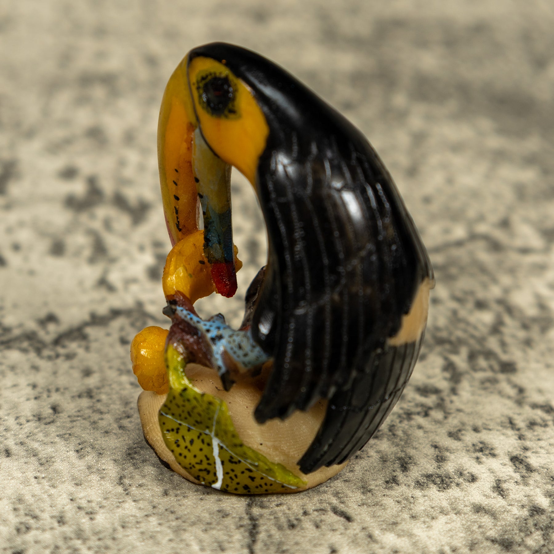 Black And Yellow Toucan Parrot Bird Tagua Carving