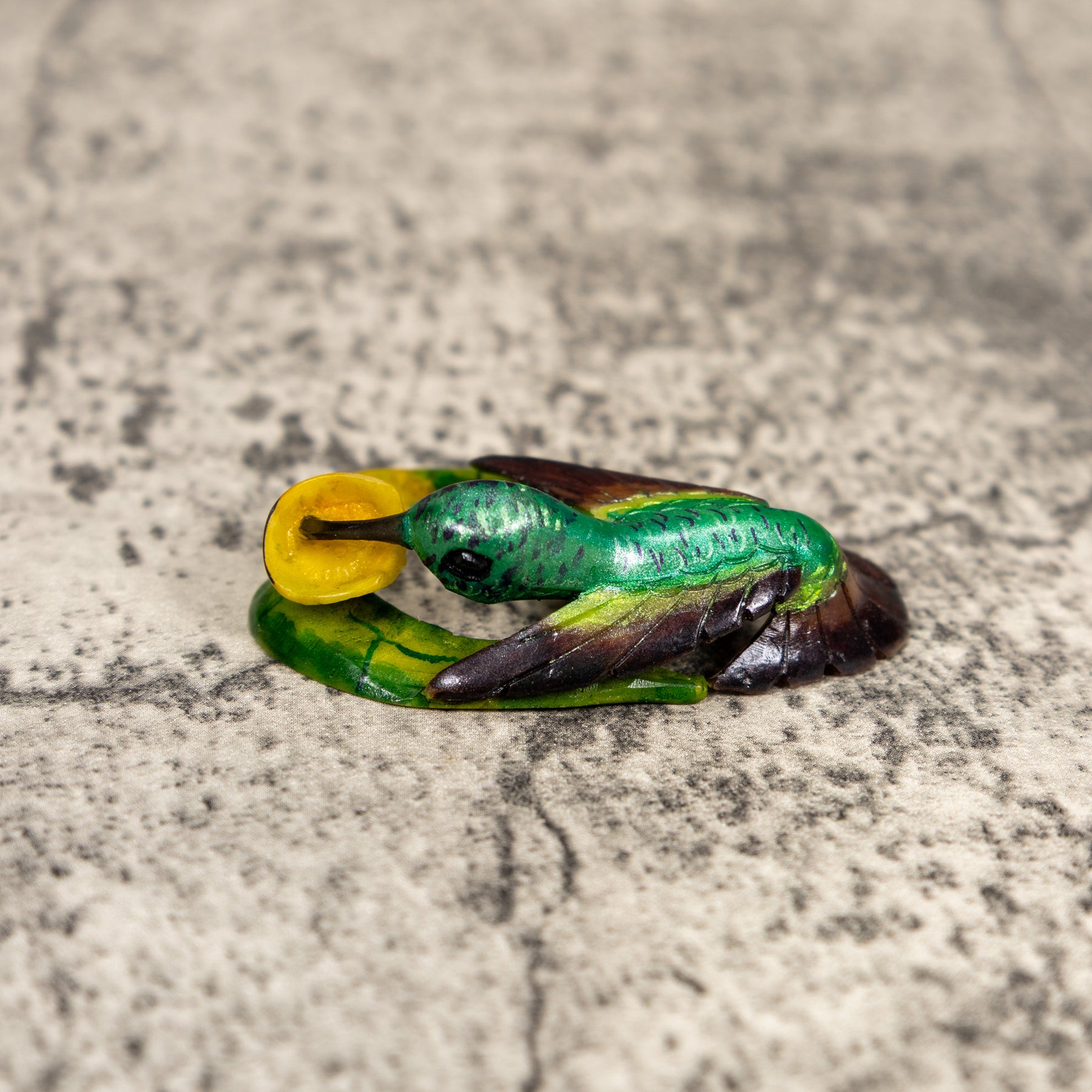 Green And Yellow Hummingbird Tagua Carving