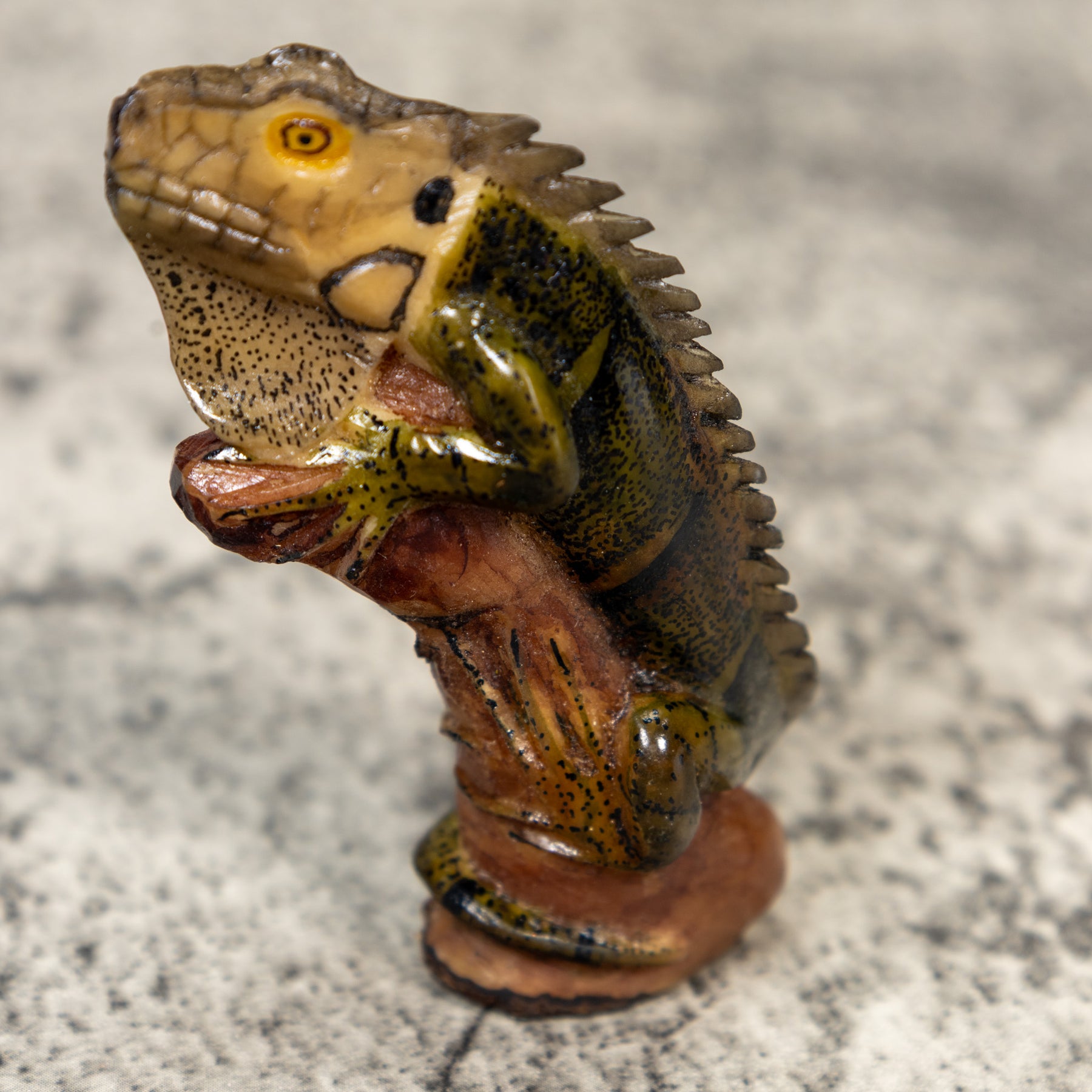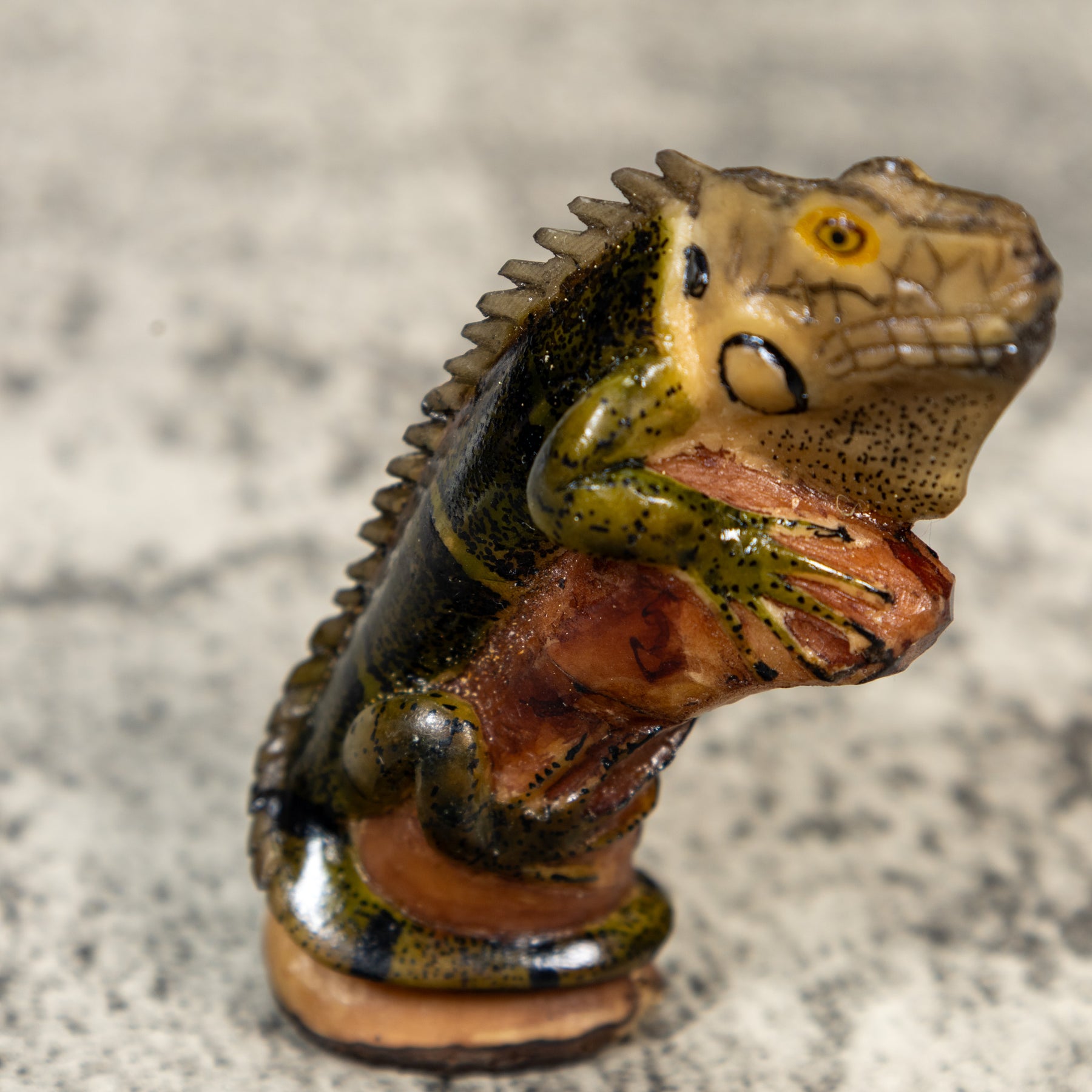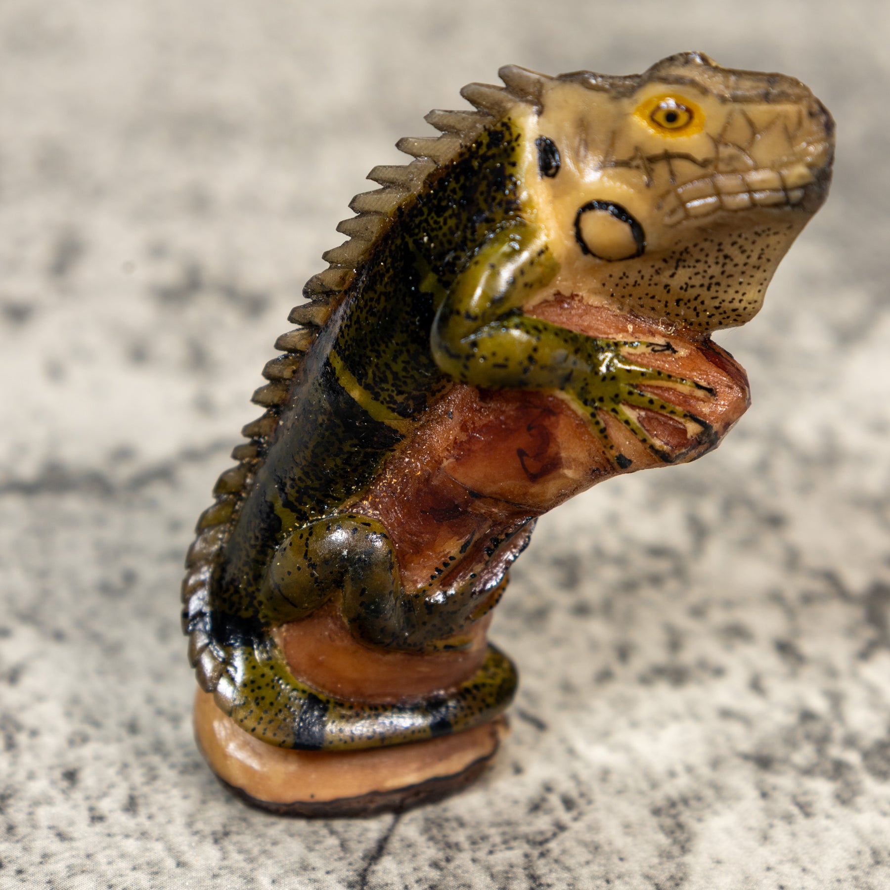 Green Black And Gray Iguana On Pedestal Tagua Carving