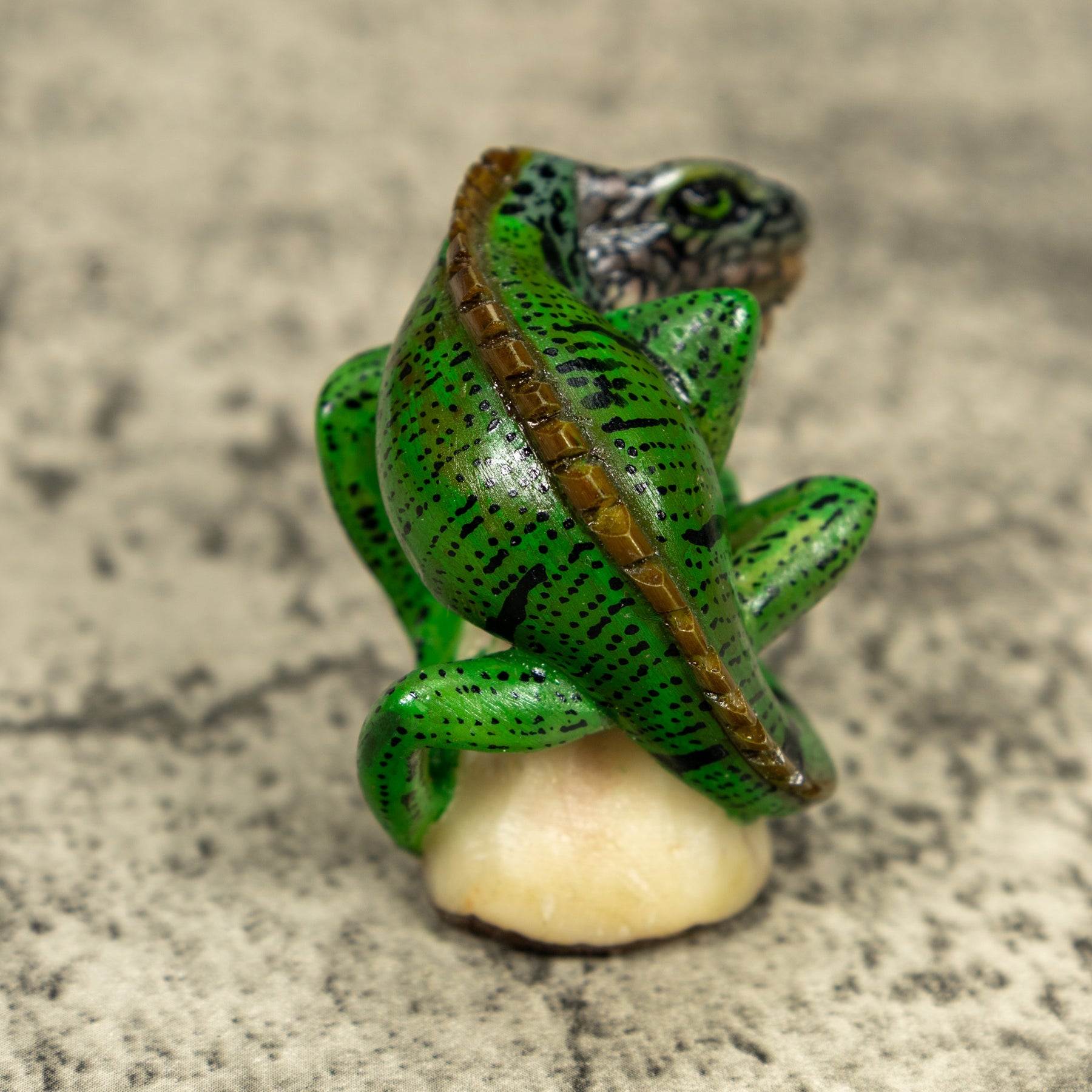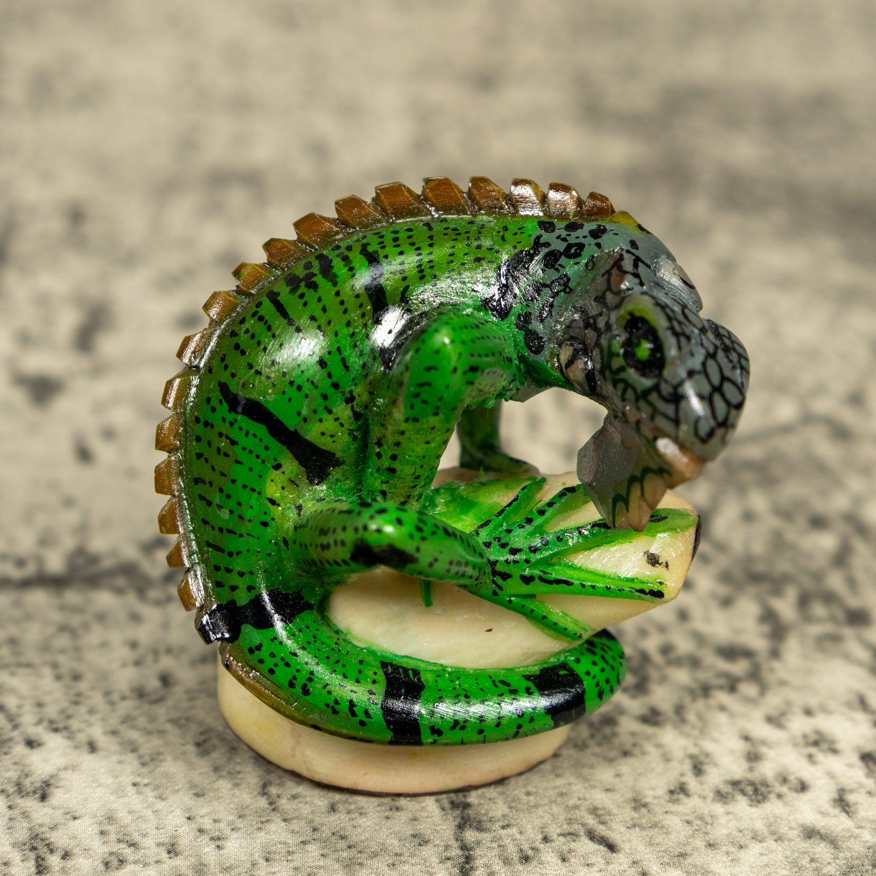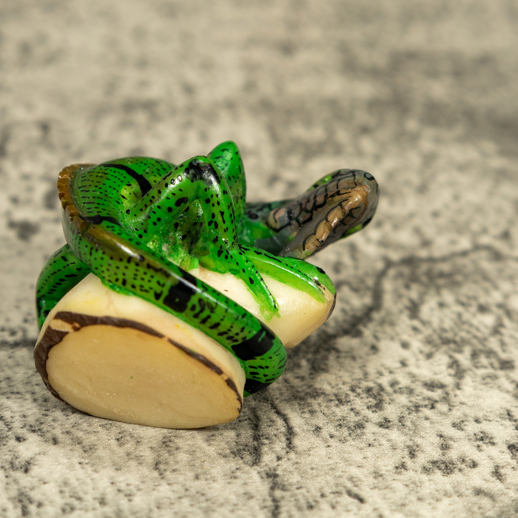 Hand carved from sustainably harvested tagua nut, often called “vegetable ivory”, this charming Iguana celebrates the rich biodiversity of the Latin American rainforest. Each small sculpture is created by skilled artisans in Panama who carefully shape and polish the natural nut before bringing the animal to life with detailed hand painting. Every piece is made by our artisan partners for TraderBrock, helping support traditional craft and fair, long term relationships with local makers.