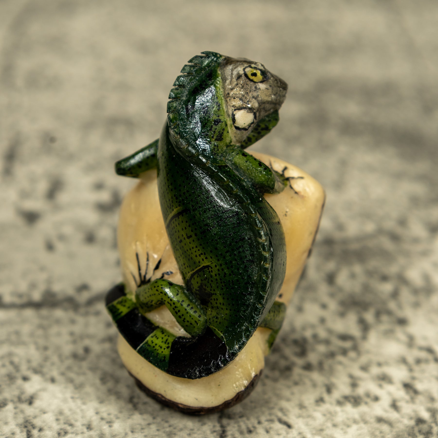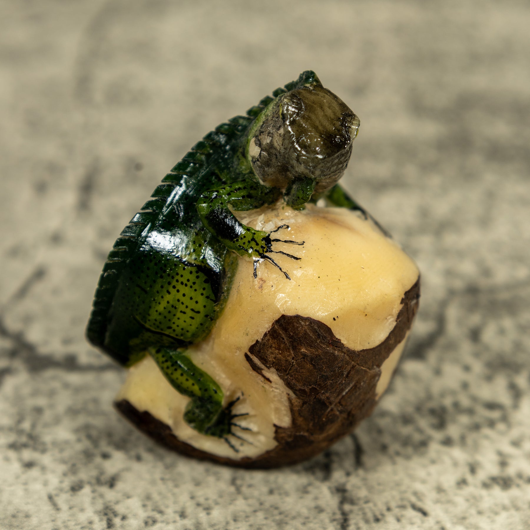 Green Iguana lizard On Pedestal Tagua Carving