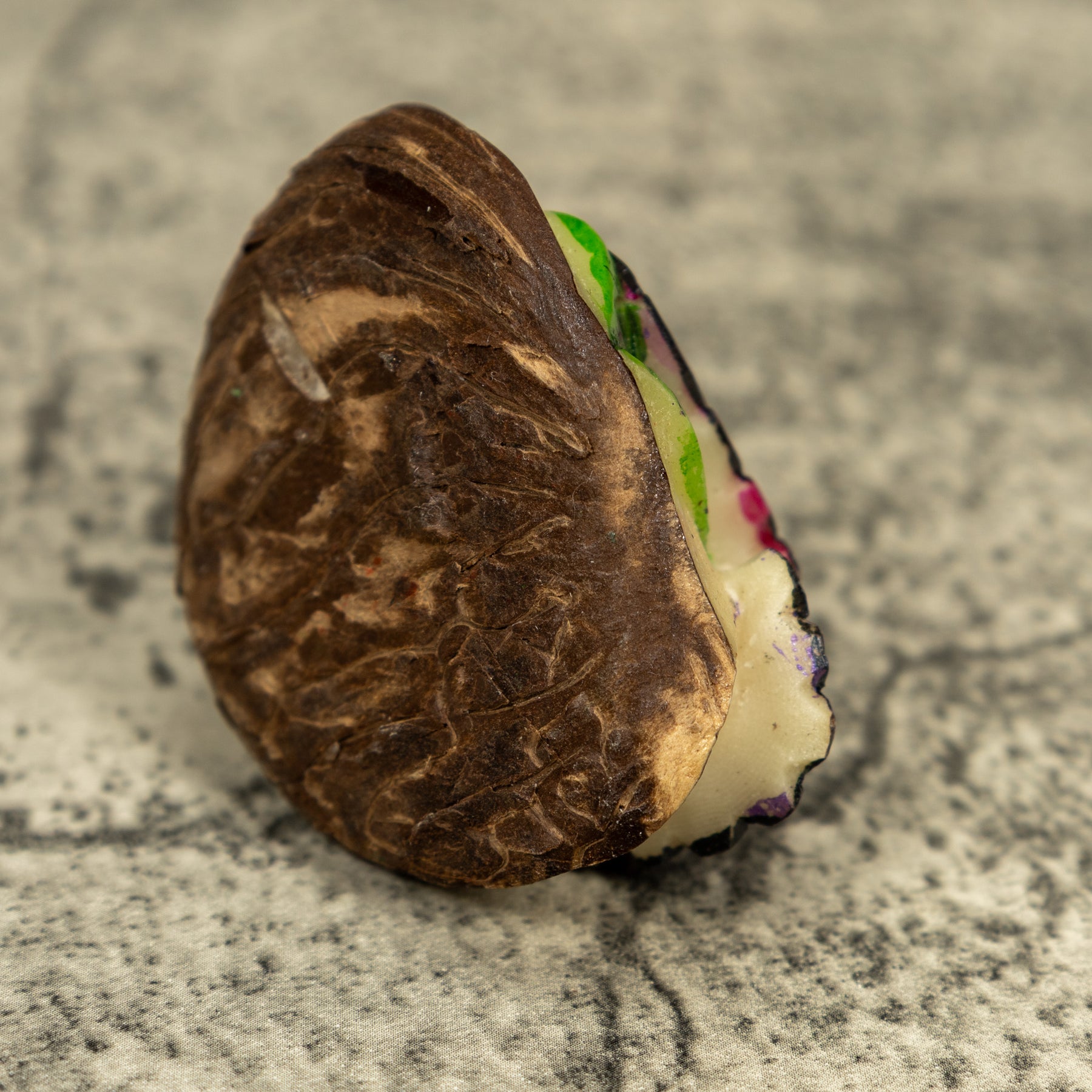 • Hand carved tagua nut “vegetable ivory” from the rainforest