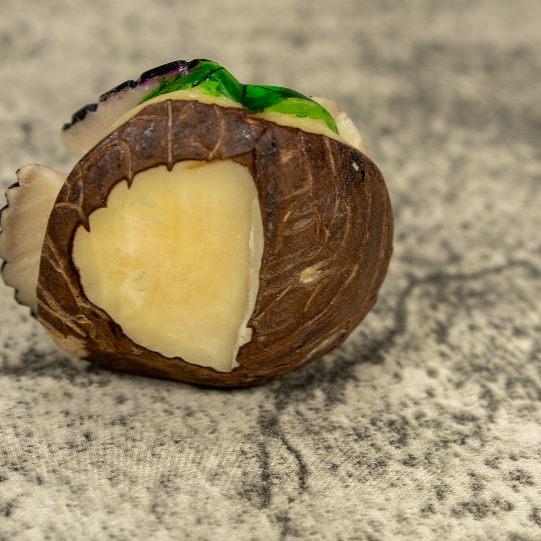 • Hand carved tagua nut “vegetable ivory” from the rainforest