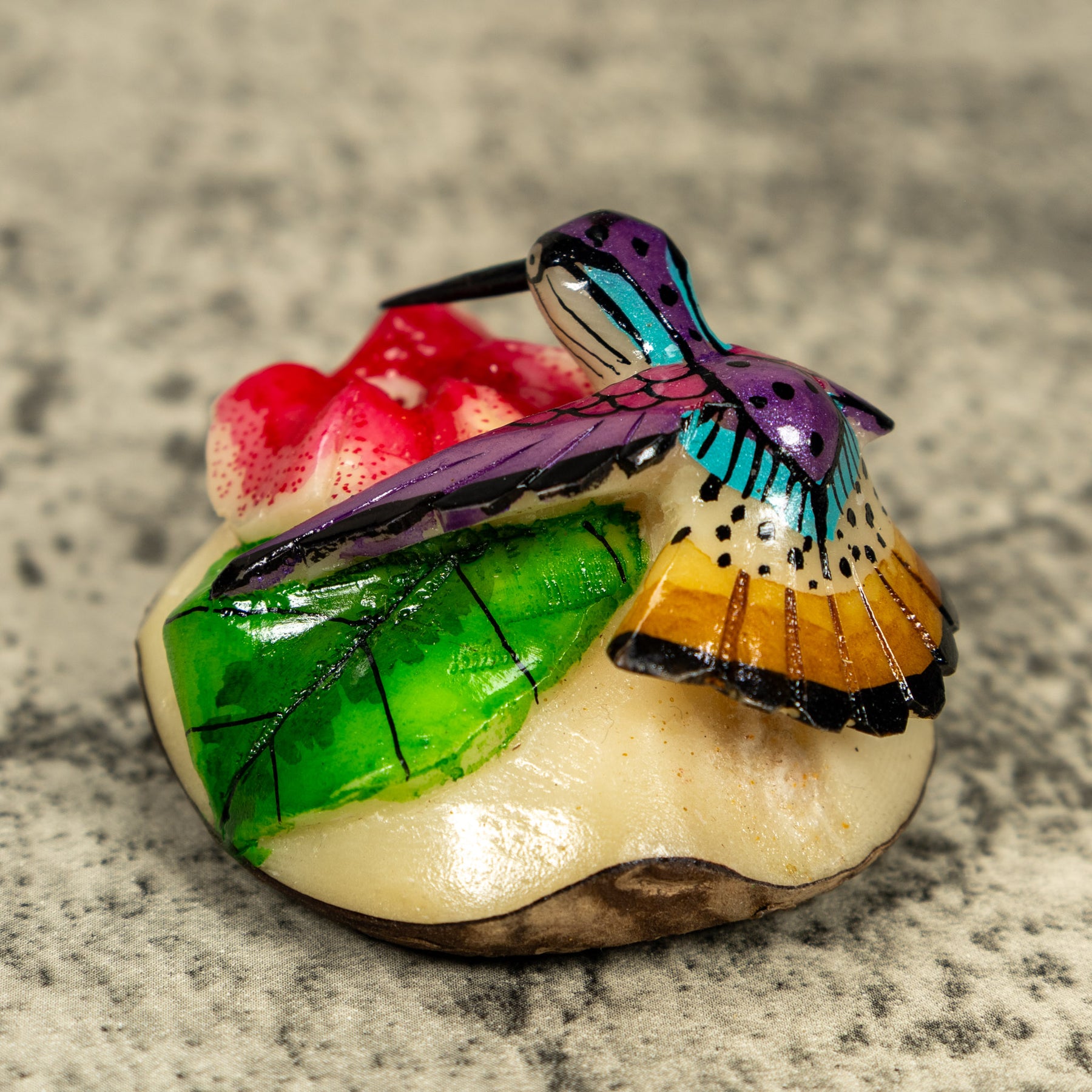 Hand carved from sustainably harvested tagua nut, often called “vegetable ivory”, this charming Hummingbird celebrates the rich biodiversity of the Latin American rainforest. Each small sculpture is created by skilled artisans in Panama who carefully shape and polish the natural nut before bringing the animal to life with detailed hand painting. Every piece is made by our artisan partners for TraderBrock, helping support traditional craft and fair, long term relationships with local makers.