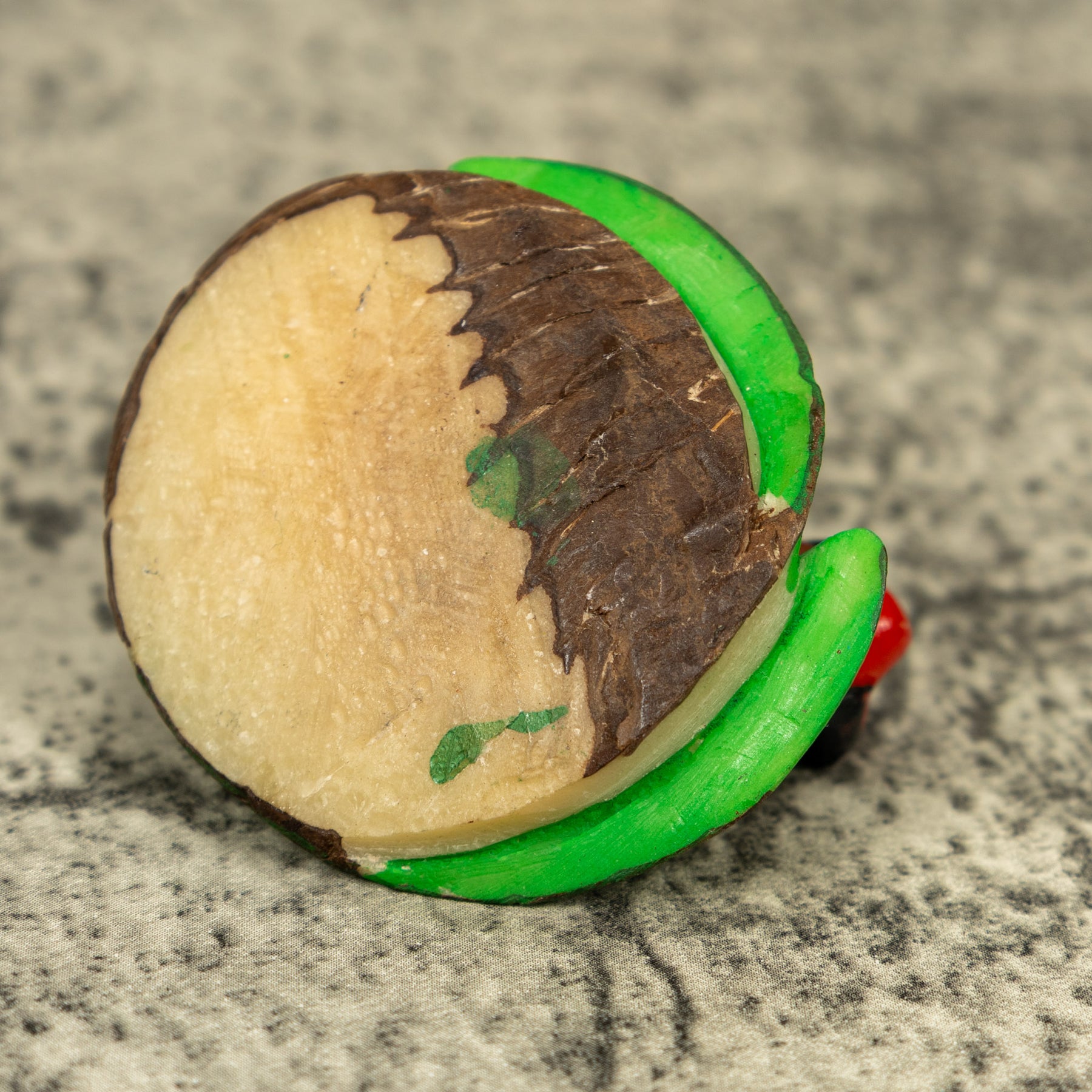 • Hand carved tagua nut “vegetable ivory” from the rainforest