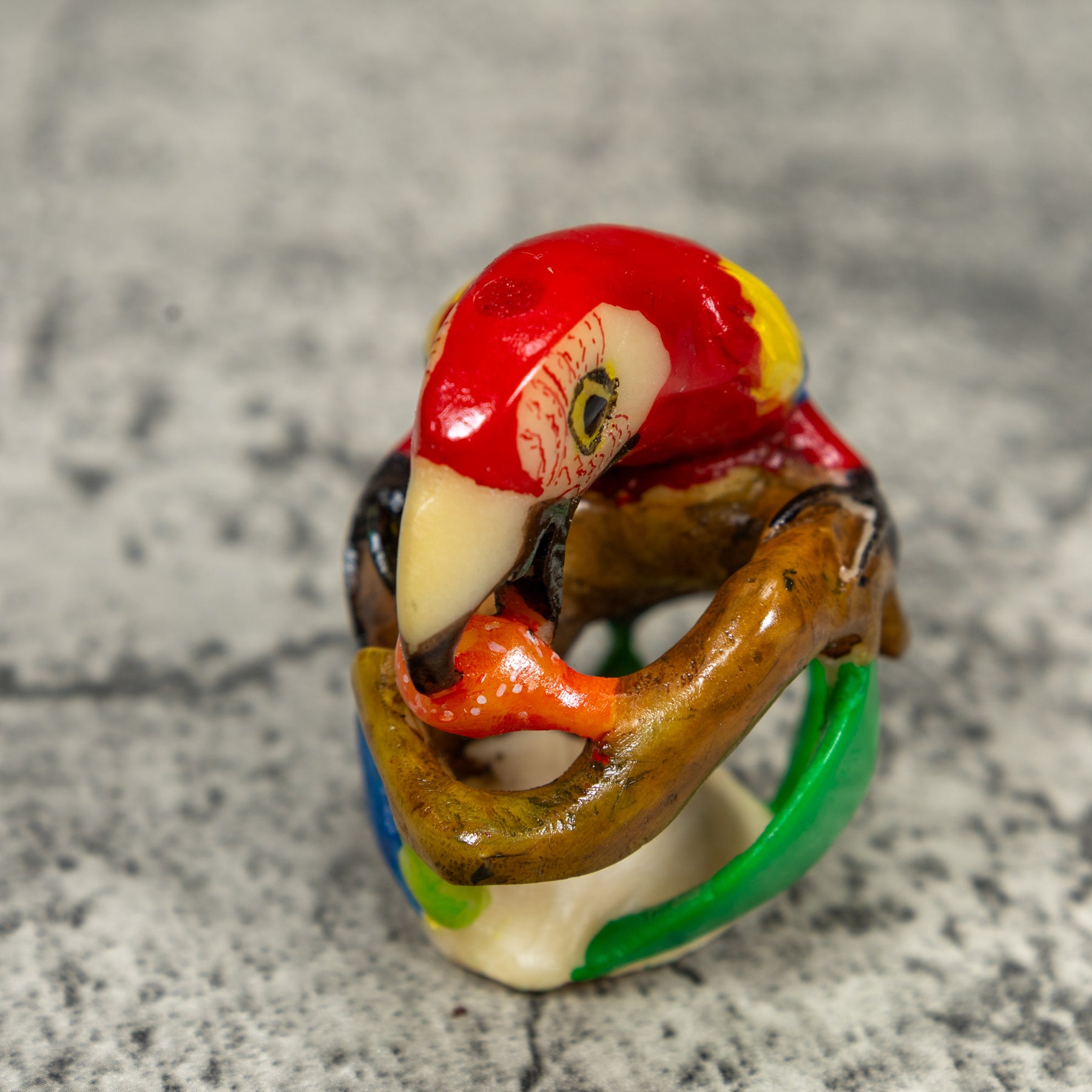 Red Yellow And Blue Macaw Parrot Bird Tagua Carving