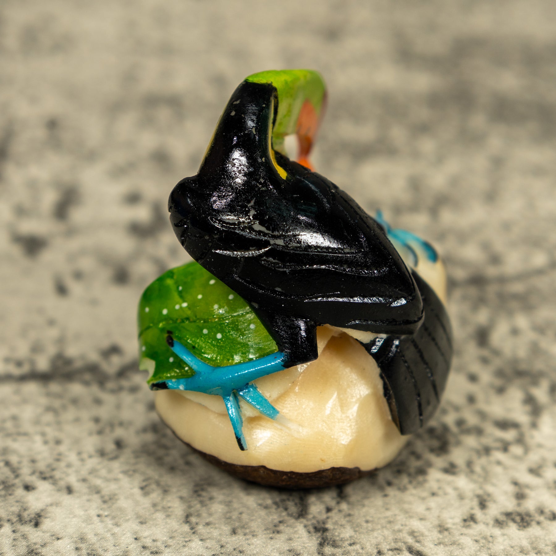 Hand carved from sustainably harvested tagua nut, often called “vegetable ivory”, this charming Toucan celebrates the rich biodiversity of the Latin American rainforest. Each small sculpture is created by skilled artisans in Panama who carefully shape and polish the natural nut before bringing the animal to life with detailed hand painting. Every piece is made by our artisan partners for TraderBrock, helping support traditional craft and fair, long term relationships with local makers.