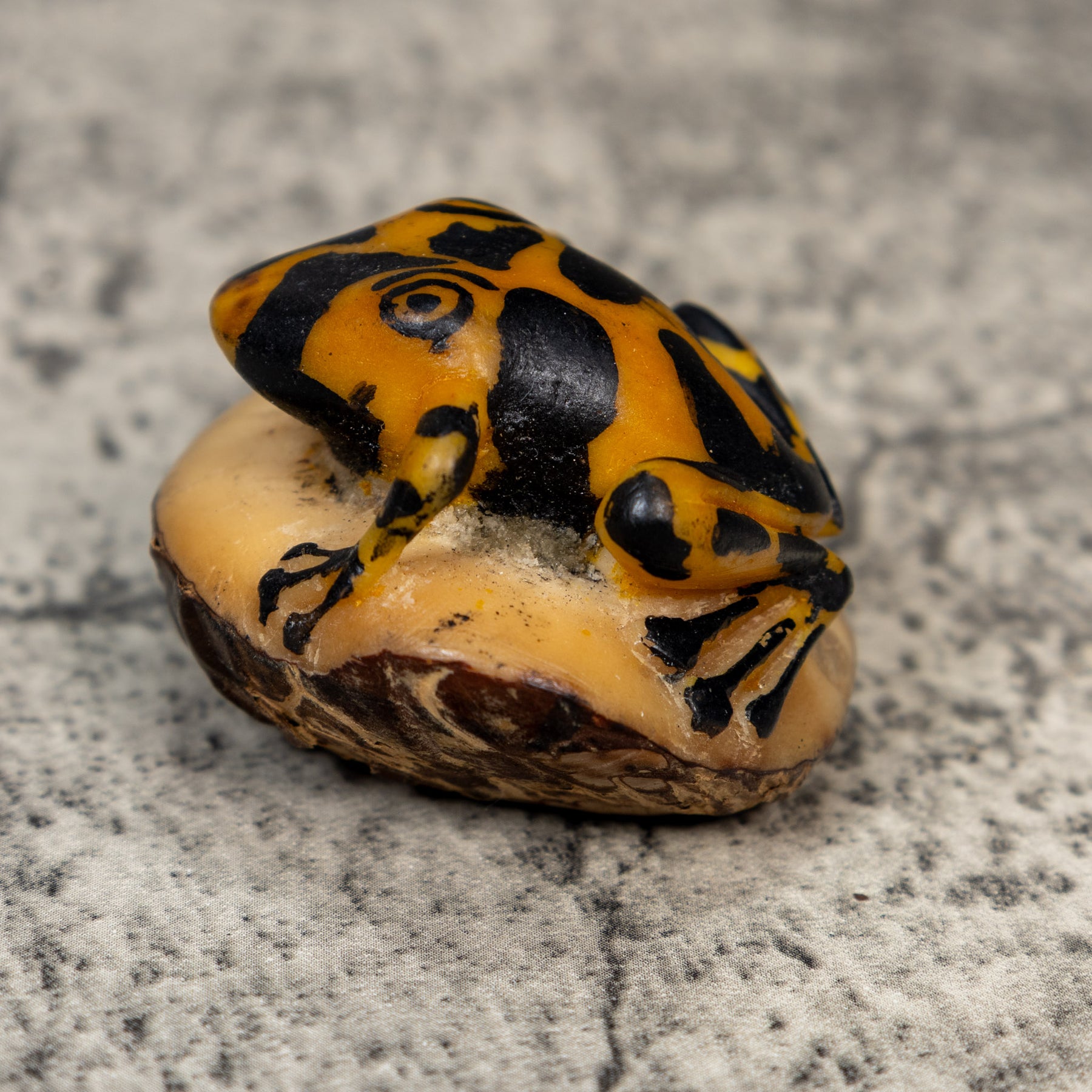Vintage Black And Gold Frog Tagua Carving