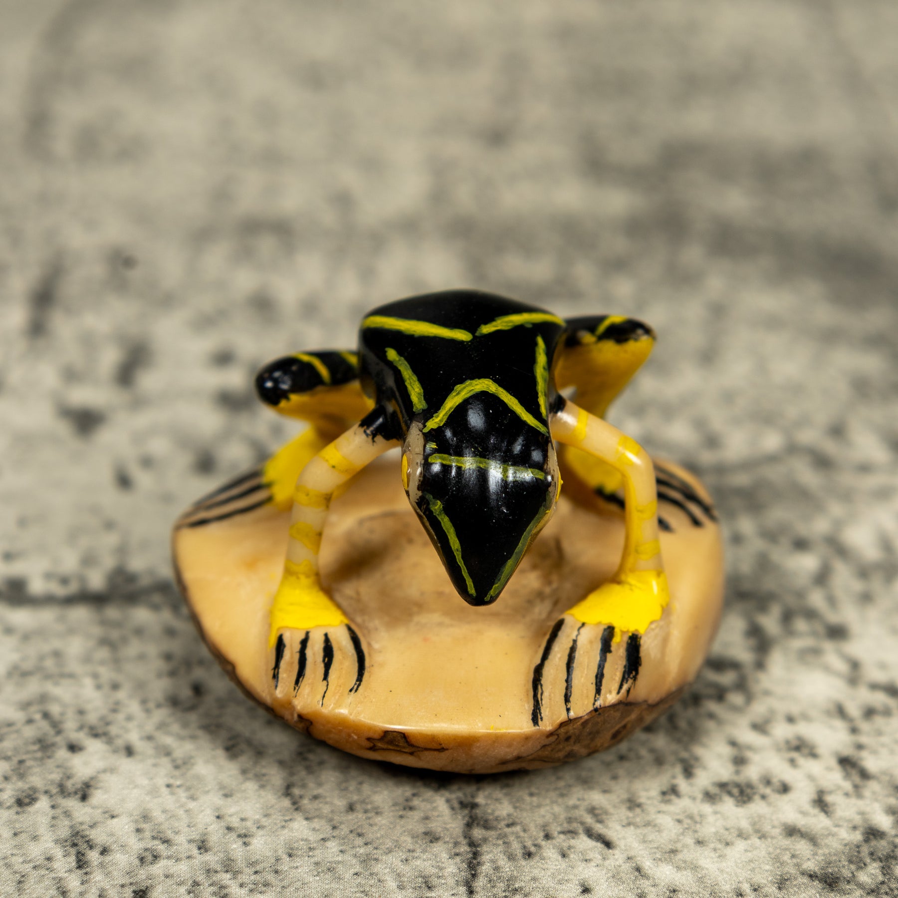 Vintage Black And Yellow Poison Dart Frog Tagua Carving