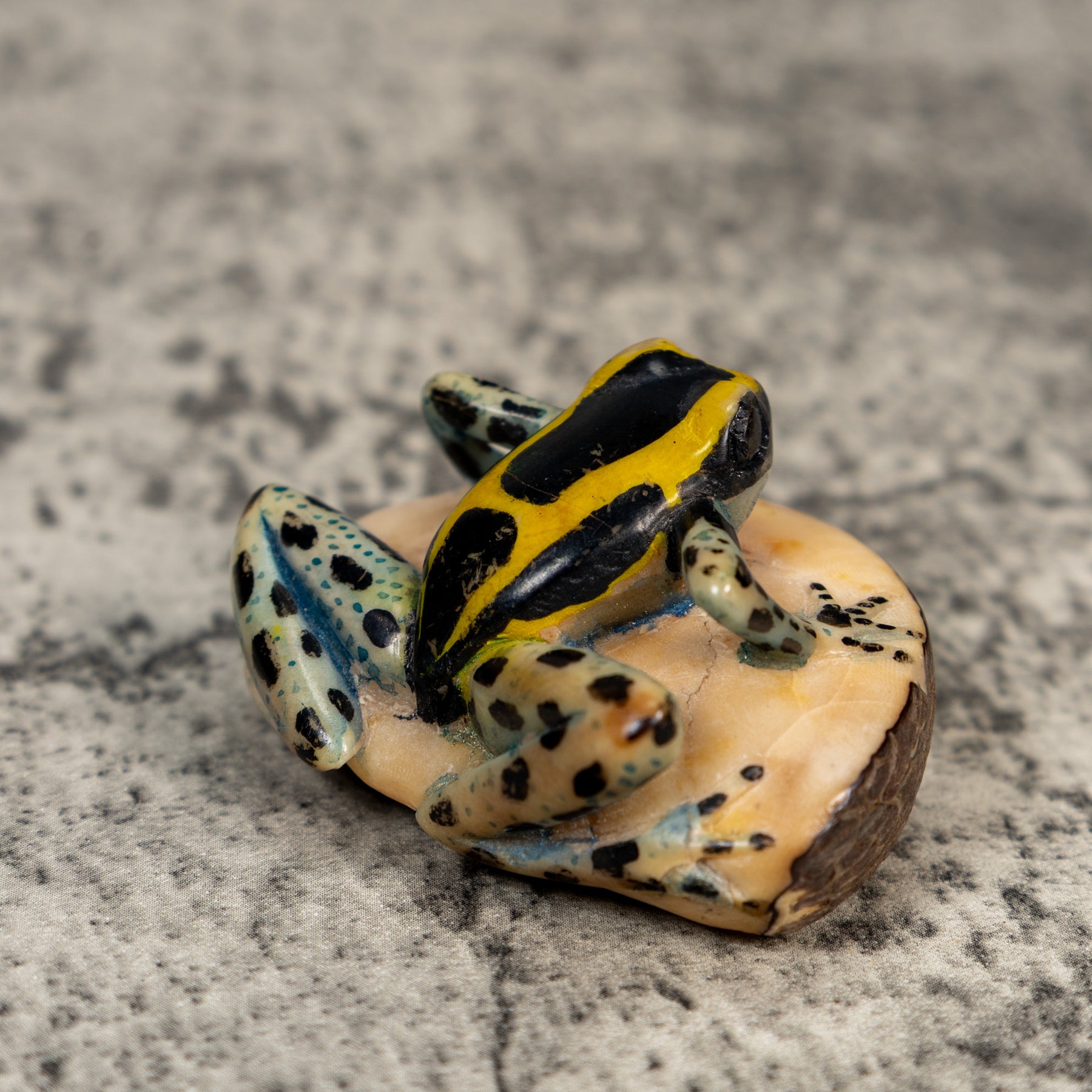 nd carved from sustainably harvested tagua nut, often called “vegetable ivory”, this charming Frog celebrates the rich biodiversity of the Latin American rainforest. Each small sculpture is created by skilled artisans in Panama who carefully shape and polish the natural nut before bringing the animal to life with detailed hand painting. Every piece is made by our artisan partners for TraderBrock, helping support traditional craft and fair, long term relationships with local makers.